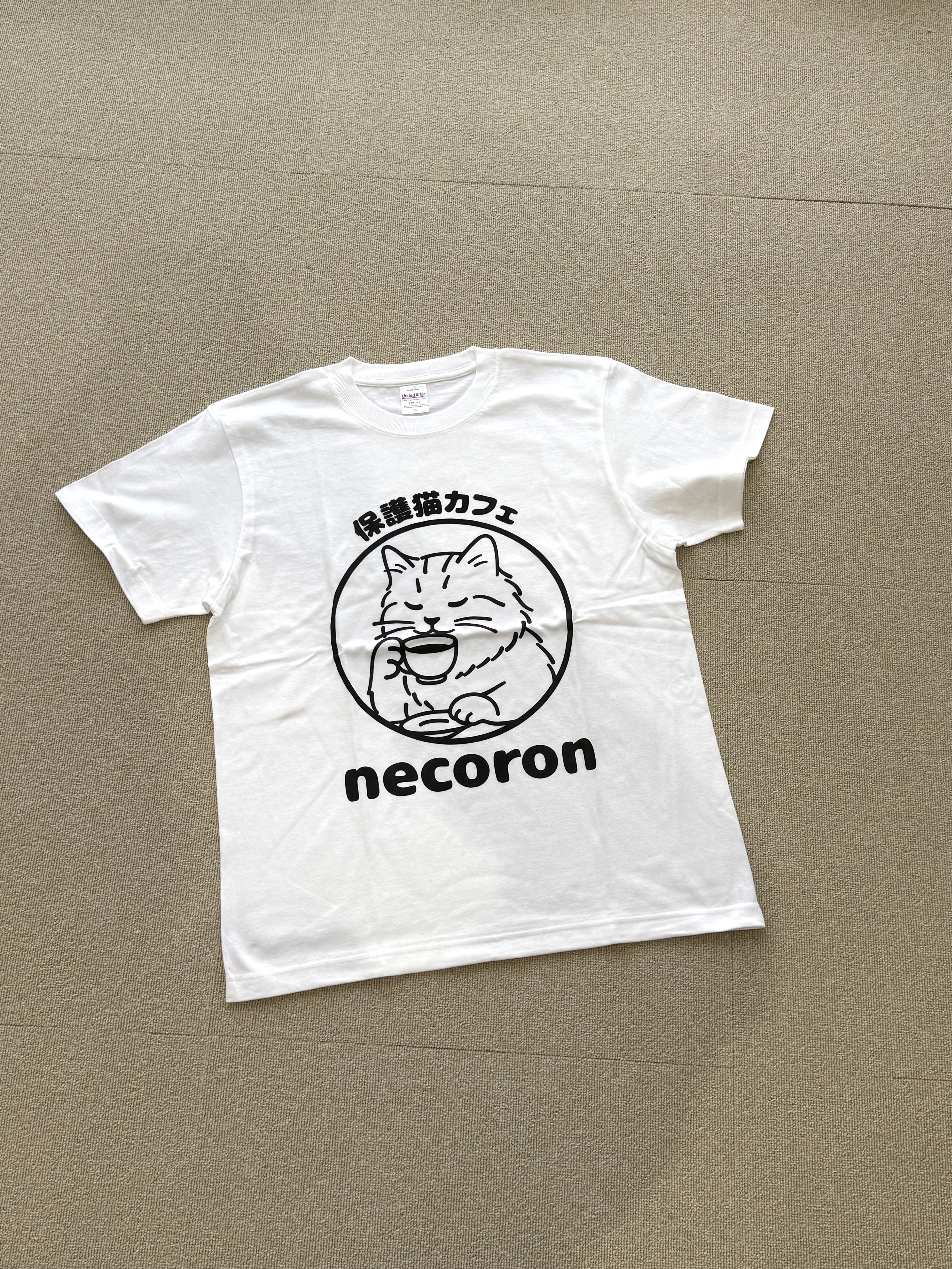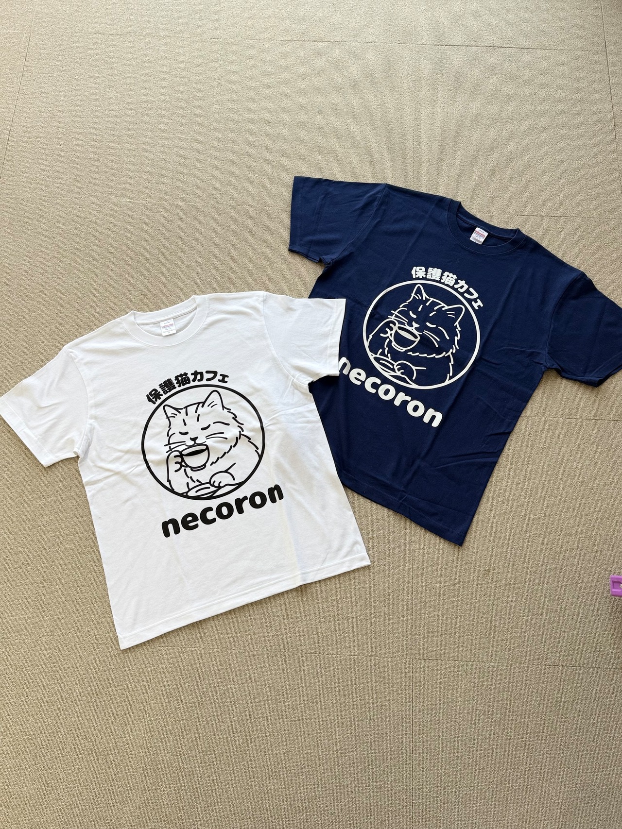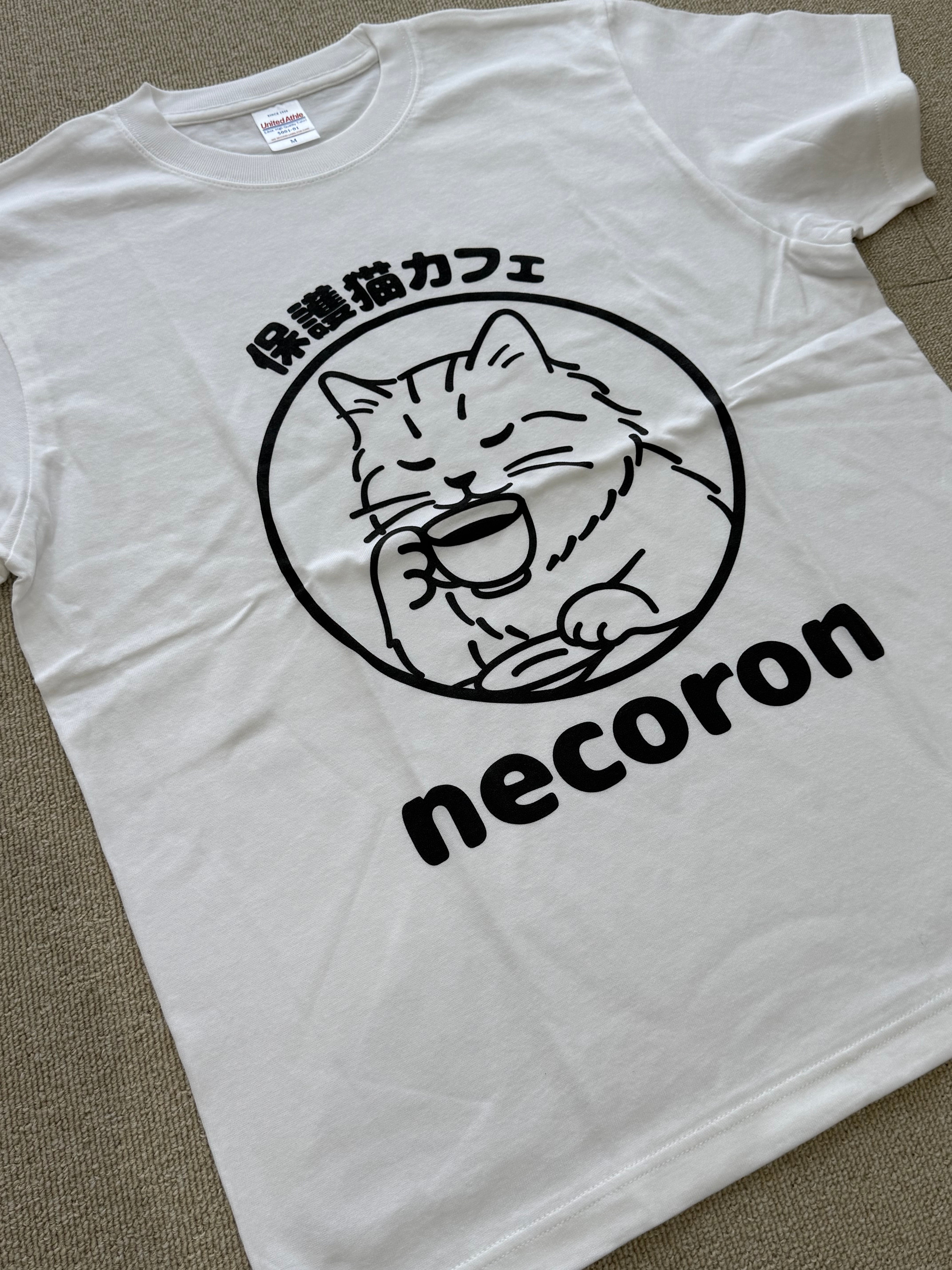 保護猫カフェnecoronのロゴマークを用いたオリジナルTシャツです