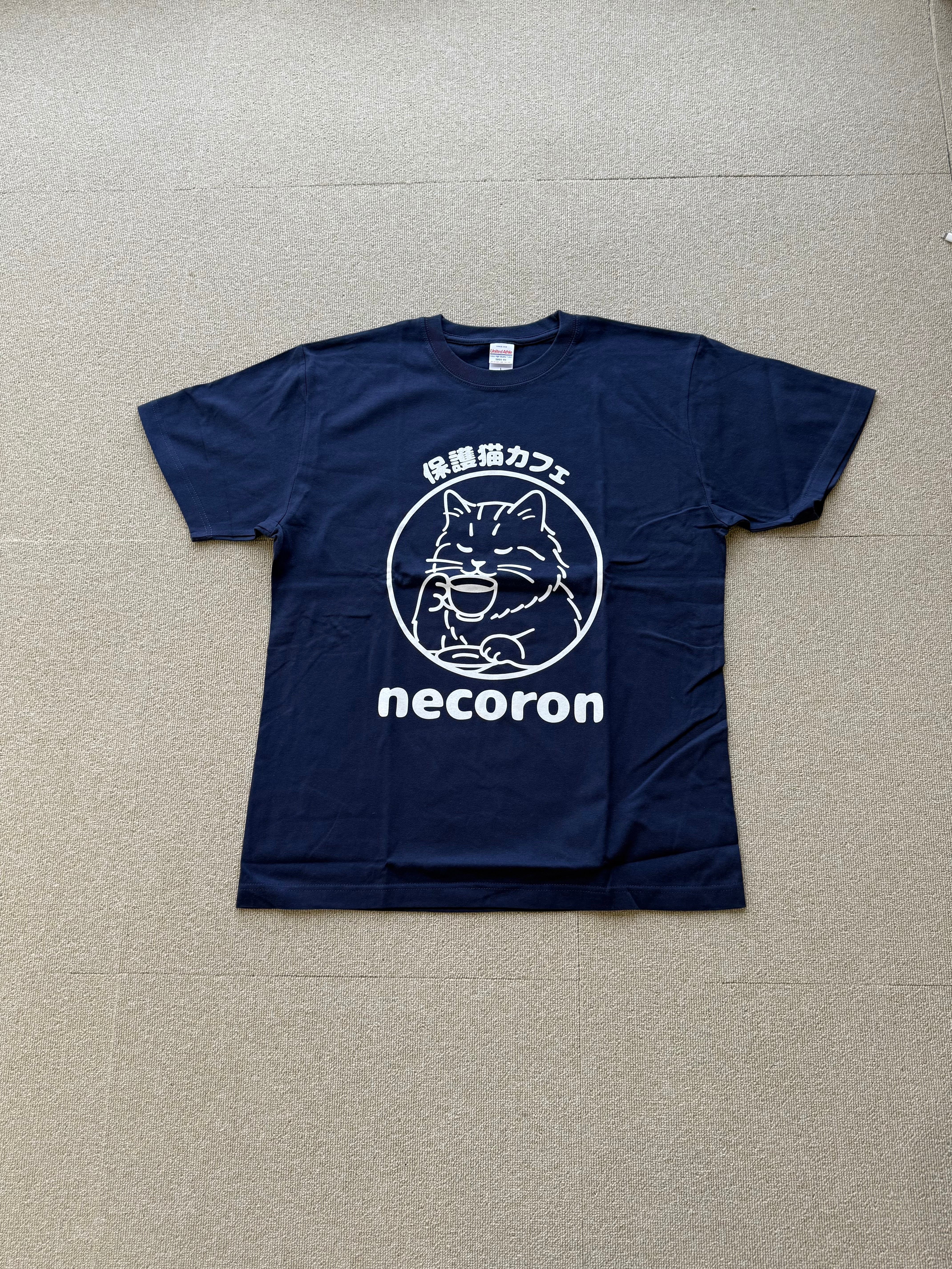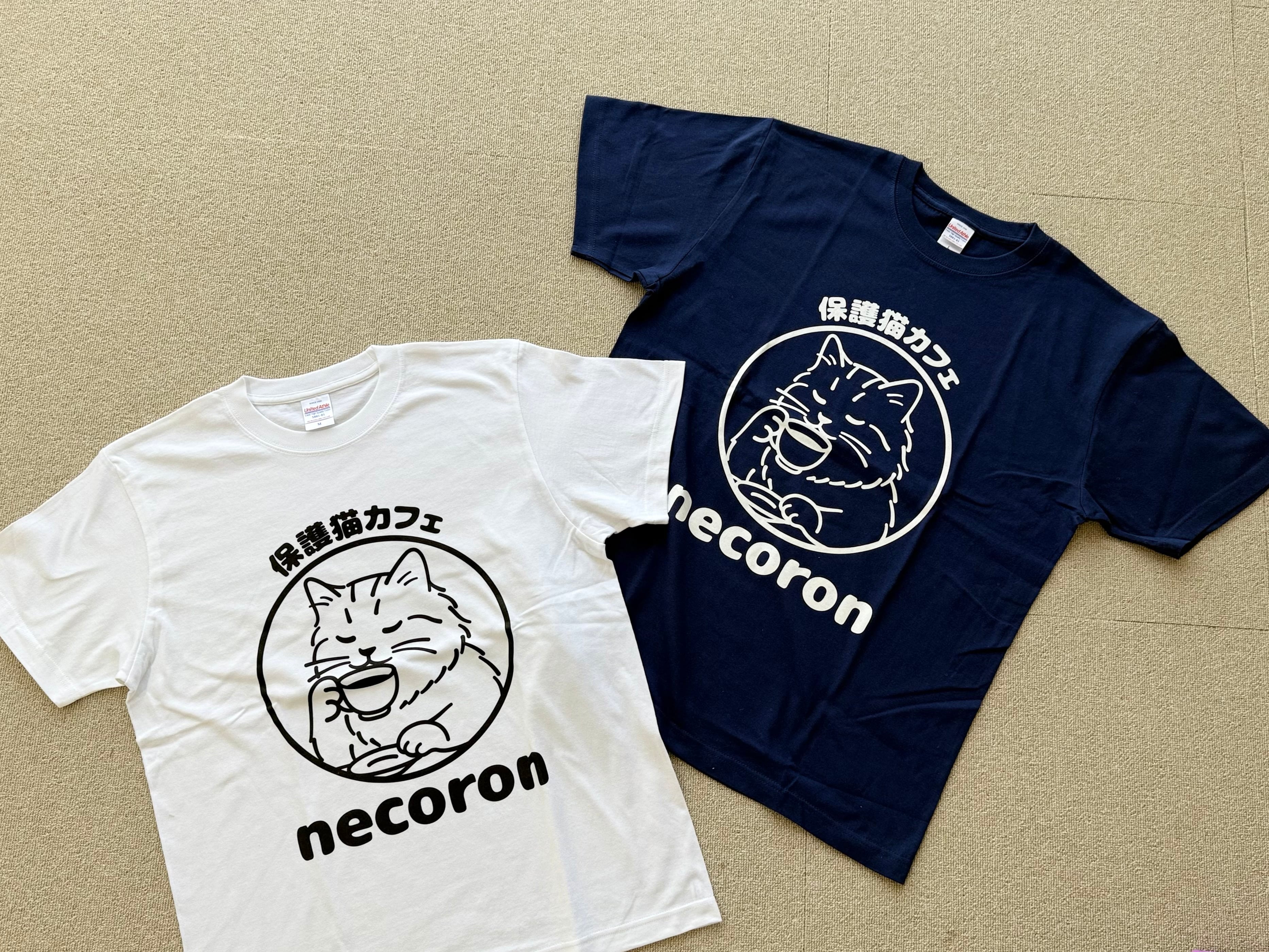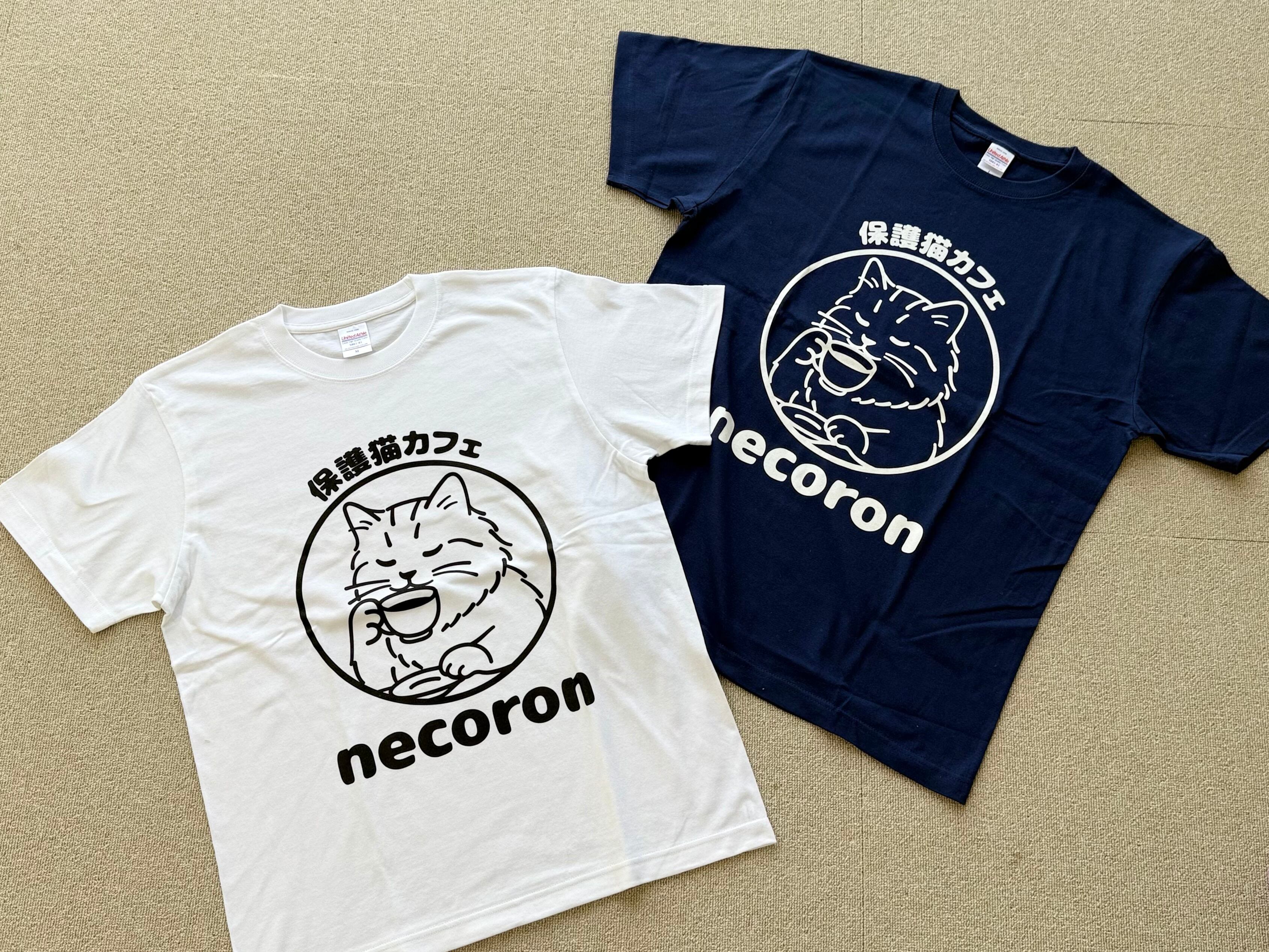 保護猫カフェnecoronのロゴマークを用いたオリジナルTシャツです。